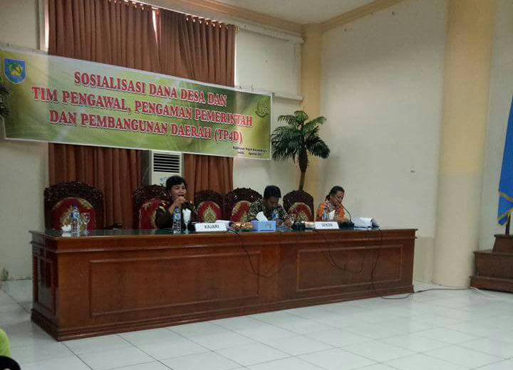 BOLMONG– Untuk mengawal dan mengamankan penggunaan Dana Desa (Dandes), Kejaksaan Negeri Kotamobagu melaksanakan Sosialisasi Dandes bersama dengan Tim Pengawal Pengaman Pemerintah dan Pembangunan Daerah (TP4D) bersama Pemerintah Kabupaten (Pemkab) Bolaang Mongondow (Bolmong).