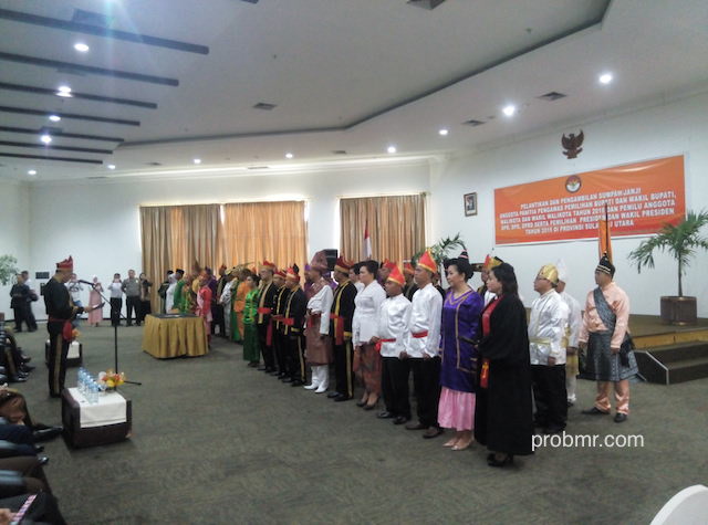 BOLMONG— Panitia Pengawas Pemilihan Umum (Panwaslu) Bupati dan Wakil Bupati, Wali Kota dan Wakil Wali Kota, Tahun 2018 dan Pemilu anggota DPR, DPD, DPRD, serta Pemilihan Presiden dan Wakil Presiden Tahun 2019 di Provinsi Sulut resmi dilantik dan diambil sumpah Senin (28/8), sekira pukul 10.00 Wita di Hotel Sutan Raja Maumbi. Ya, sebanyak 45 anggota Panswaslu yang diambil sumpah tersebut tersebar di 15 Kabupaten dan Kota yang ada di Sulut. Dengan memakai pakaian kebudayaan masing-masing daerah, yang juga di dampingi oleh masing-masing keluarga, para anggota Panwaslu tampak bahagia dan siap untuk mengemban tugas selanjutnya sebagaimana sumpah dan janji yang sudah disampaikan.