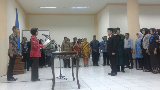 BOLMONG– Pemkab Bolmong resmi melantik dan mengambil sumpah jabatan kepada Direktur Utama (Dirut) Perusahaan Daerah Air Minum (PDAM) Irwan Paputungan SE, dan juga secara resmi memberhentikan Dirut sebelumnya Hasni Wantasen SE Kamis, (5/10) di ruang rapat lantai II Kantor Bupati.