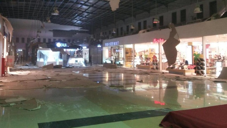 -Dinding bangunan retak dan plafon rusak.
