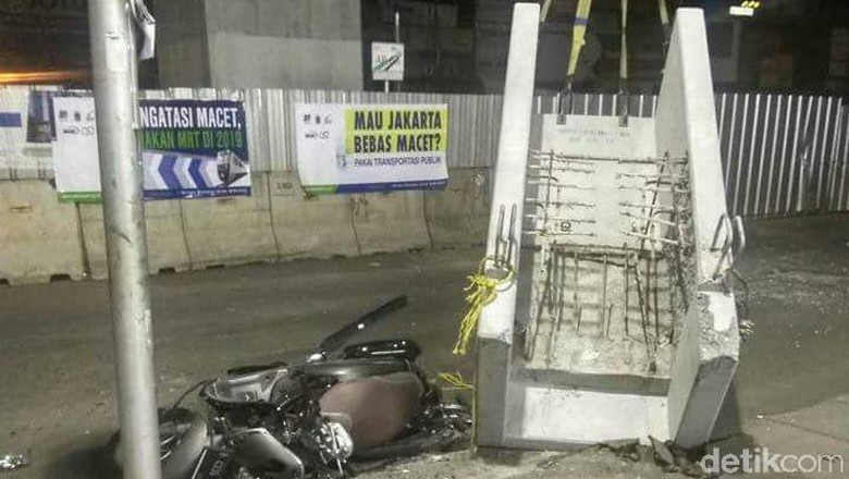 Parapet atau pagar beton pembatas jalur mass rapid transit (MRT) jatuh dan menimpa kendaraan seorang pemotor. Polda Metro Jaya akan berkoordinasi dengan PT MRT terkait peristiwa ini.