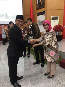 Piala Kota Sehat diserahkan oleh Plt Dirjen Bina Pembangunan Daerah, di Ruang Sasana Bhakti Praha Kemendagri, Jalan Medan Merdeka Utara Momor 7 Jakarta pusat.