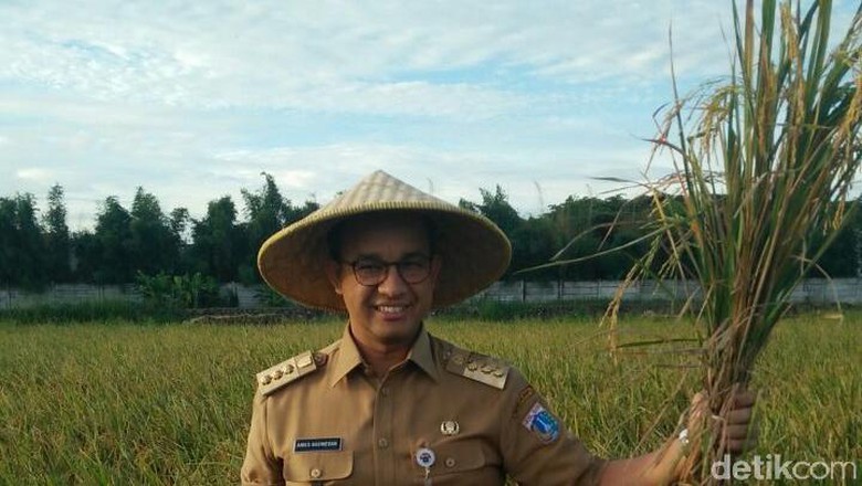 Anies dengan sigap turun ke tengah sawah dan memanen padi yang menguning. Dia memanen padi bersama Kepala Dinas Ketahanan Pangan Lautan dan Pertanian Darjamuni dan Kepala UPT Pusat Pengembangan Benih dan Proteksi Tanaman (P2BPT) Ali Nurdin.