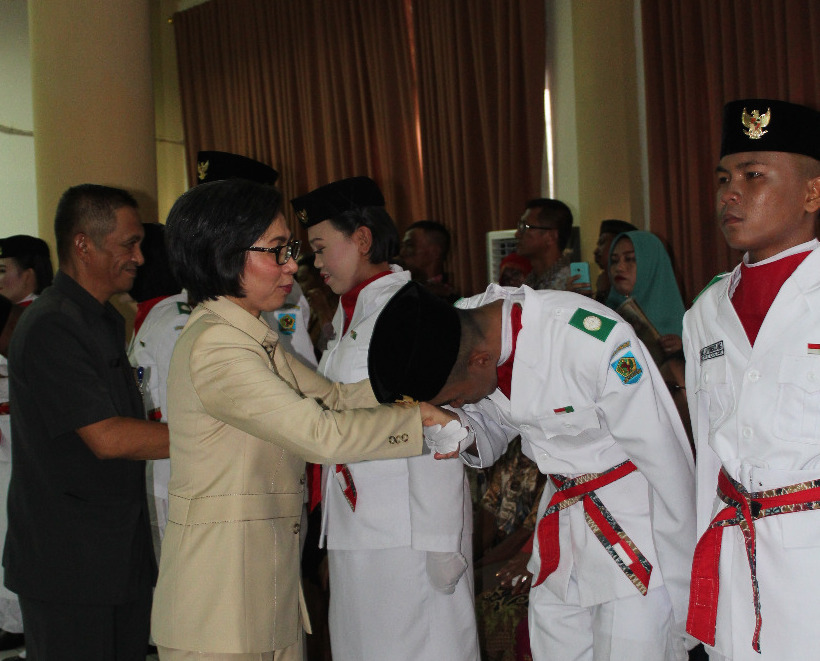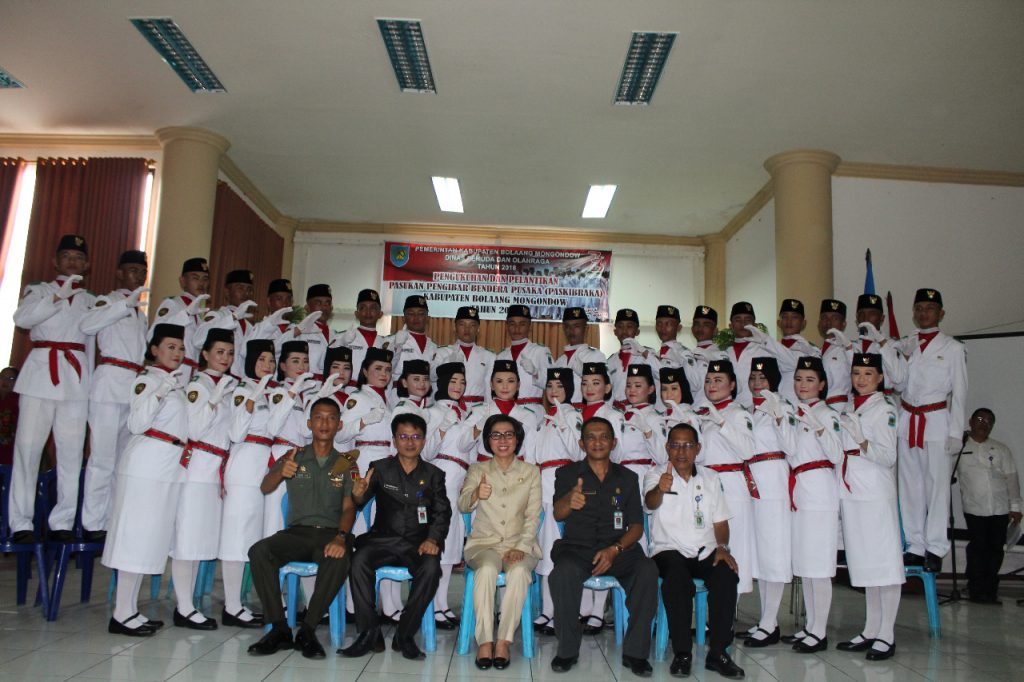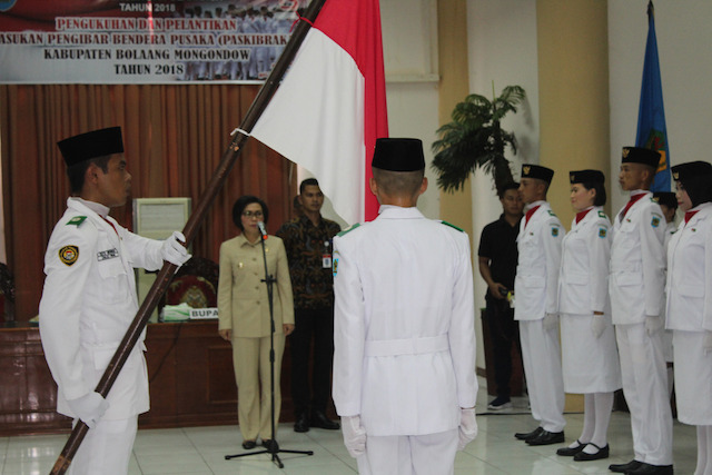 BOLMONG— Sebanyak 36 Pasukan Pengibar Bendera Pusaka (Paskibraka) resmi dikukuhkan dan dilantik Bupati Yasti Soepredjo Mokoagow, di ruang rapat lantai II Kantor Bupati Bolmong, Rabu (15/8).