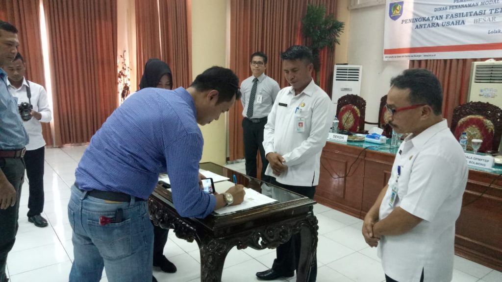 BOLMONG– Pelaku Usaha Mikro Kecil dan Menengah (UMKM) di daerah Kabupaten Bolmong terus mendapat perhatian serius Pemeintah Kabupaten (Pemkab) Bolmong. Upaya Pemkab Bolmong itu terlihat saat Bupati Yasti Soepredjo Mokoagow, diwakili Sekretaris Daerah (Sekda) Bolmong Tahlis Gallang membuka kegiatan peningkatan fasilitas terwujudnya kerja strtergis antara usaha besar dan usaha kecil menengah, yang di fasilitasi oleh Dinas Penanaman Modal dan Pelayanan Terpadu Satu Pintu (DPMPTSP) di Lantai II Kantor Bupati Bolmong, Kecamatan Lolak. Rabu (31/10).