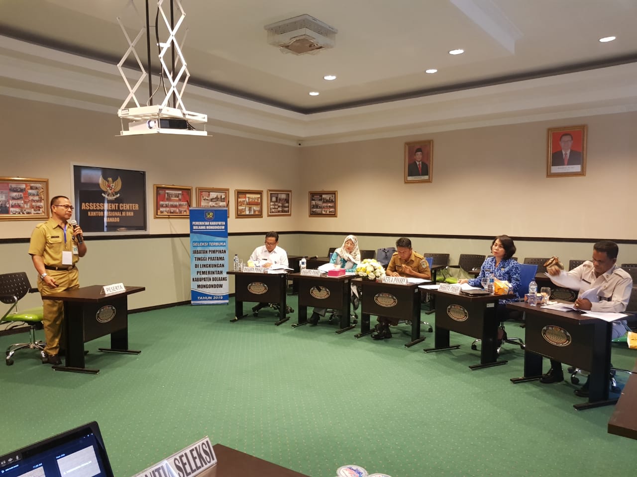 Kegiatan tersebut dibuka langsung oleh Ketua Panitia Seleksi (Pansel) Tahlis Gallang yang juga Sekretaris Daerah (Sekda) Bolmong, didampingi anggota Pansel lain, masing-masing Sekretaris Pansel Fitri Mamonto dari akademisi, Kwinhatmaka Kepala Kantor BPKP Sulut, Wakiran Kepala BKN Regional XI Manado, serta Femmy J. Suluh Kepala BKD Provinsi Sulut.
