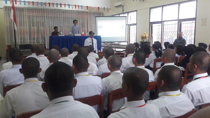 BOLMONG – Bupati Bolaang Mongondow (Bolmong) Yasti Soepredjo Mokoagow memeberikan kuliah umum selam dua jam, pada Latihan dasar (Latsar) Calon Pegawai Negeri Sipil (CPNS), yang digelar Badan Kepegawaian Pelatihan dan Pendidikan (BKPP) Jumat (25/10). ”Tujuan Latsar membentuk karakter menjadi ASN yang disiplin, loyal, handal dan berintegritas. Saya berharap, latsat ini bisa melahirkan PNS yang handal dan berintegritas,” kata Bupati saat menyampaikan materi pembuka di hadapan 108 CPNS gelombang pertama di Gedung Yadika Desa Kopandakan II Kecamatan Lolayan.