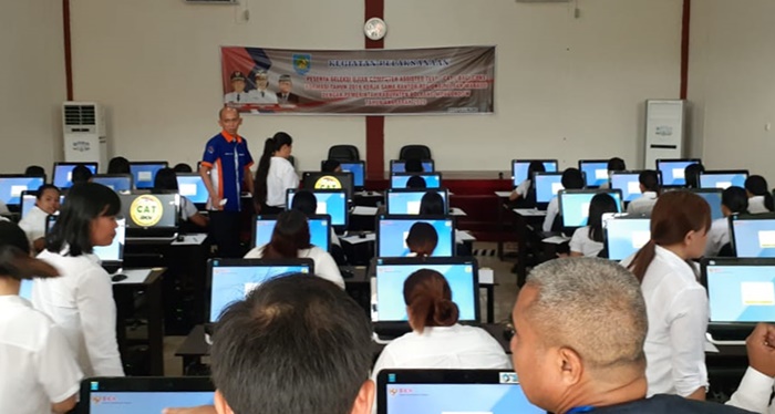 BOLMONG – Ujian Tes Seleksi Kopetensi Dasar (SKD) Calon Pegawai Negeri Sipil (CPNS) periode tahun 2019 di lingkup Pemerintah Kabupaten (Pemkab) Bolmong resmi dibuka, Selasa (18/2). Ujian bekerja sama dengan Badan Kepegawaian Negara (BKN) di Gedung CAT, Badan Kepegawain Pendidikan dan Pelatihan (BKPP) Bolmong. Ketua DPRD Bolmong Welty Komaling turut hadir dalam pembukaan tes SKD CPNS bersama tim dari BKN Regional XI Manado. Tahlis memastikan, bahwa selama berlangsungnya tes CPNS tidak ada intervensi apapun. “Tidak mungkin ada intervensi dari pihak manapun, baik pejabat atau politik manapun. Karena pola sistemnya sudah Computer Assisted Test (CAT),” tegasnya.