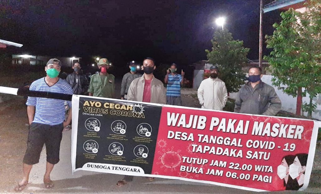 BOLMONG – Pemerintah Desa Tapadaka Satu Kecamatan Dumoga Tenggara mulai membatasi mobilitas keluar masuk desa, mulai malam ini Sabtu (11/4). Sangadi (kepala desa) Tapadaka Satu Among Kangki mengatakan, ini adalah bagian dari upaya untuk penanganan pencegahan penyebaran covid 19 di wilayah Desa Tapadaka Satu. Aktivitas keluar masuk desa dibatasi mulai pagi hingga sore. “Mulai jam 7 malam, penjagaan mulai diperketat oleh anggota-anggota hansip dan aparat desa yang bertugas. Jam 10 malam akses ditutup total hingga jam 6 pagi,” kata Kangki.