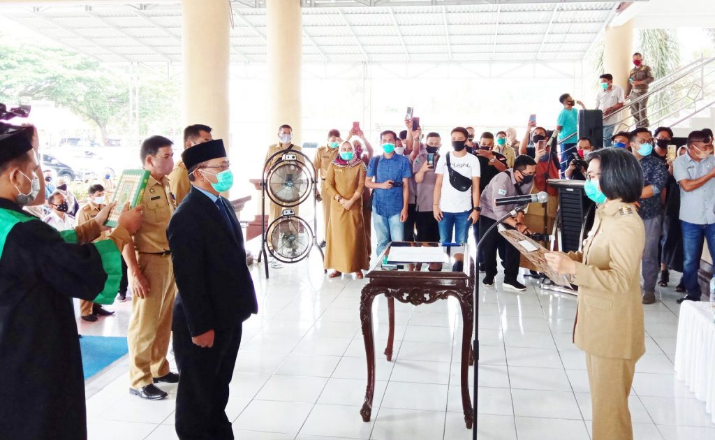 BOLMONG – Ada lima agenda pemerintahan yang diselesaikan Bupati Bolaang Mongondow (Bolmong) Yasti Soepredjo Mokoagow, Senin (8/6). Sejak pukul 08.00 pagi, bupati Yasti melakukan penyerahan bantuan pangan tahap dua untuk warga terdampak Covid-19, di Kecamatan Sang Tombolang dan Lolak, yang digelar di tempat yang disediakan tiap kecamatan. Selanjutnya, Bupati Yasti melantik Direktur Utama PDAM Bolmong, kemudian merotasi sejumlah pejabat struktural Pemkab Bolmong, hingga menyerahkan Surat Keputusan (SK) pengangkatan CPNS angkatan tahun 2018 menjadi PNS 100 persen, serta penyerahan hadiah kepada pemenang lombe ASN teladan di lingkup Pemkab Bolmong.