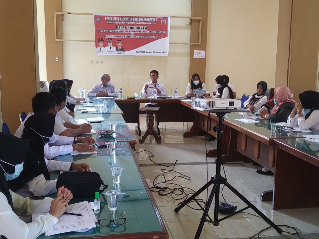BOLMONG – Dinas Pemberdayaan Perempuan dan Perlindungan Anak (DP3A) Kabupaten Bolaang Mongondow (Bolmong) menggelar rapat koordinasi verifikasi lapangan anugrah parahita ekapaya (APE) tahun 2021, dan penilaian mandiri kabupaten layak anak (KLA) tahun 2021.
