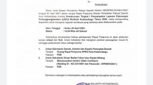 “Ya hari ini sesuai undangan akan ada sidang paripurna pembicaraan tingkat 1 penyampaian laporan keterangan pertanggungjawaban (LKPJ) Wali Kota tahun 2020,”ungkap Agung.