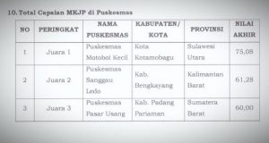 “Alhamdulillah, ini berkat bimbingan dari ibu wali kota dan bapak wakil wali kota. Selain itu, petunjuk teknis dari Kepala Dinas Kesehatan dan Kepala Dinas PP-KB Kota Kotamobagu serta dukungan dari seluruh staf PKM Motoboi Kecil, penghargaan ini kami persembahkan untuk pemerintah dan seluruh masyarakat Kota Kotamobagu,” ucap Linda.