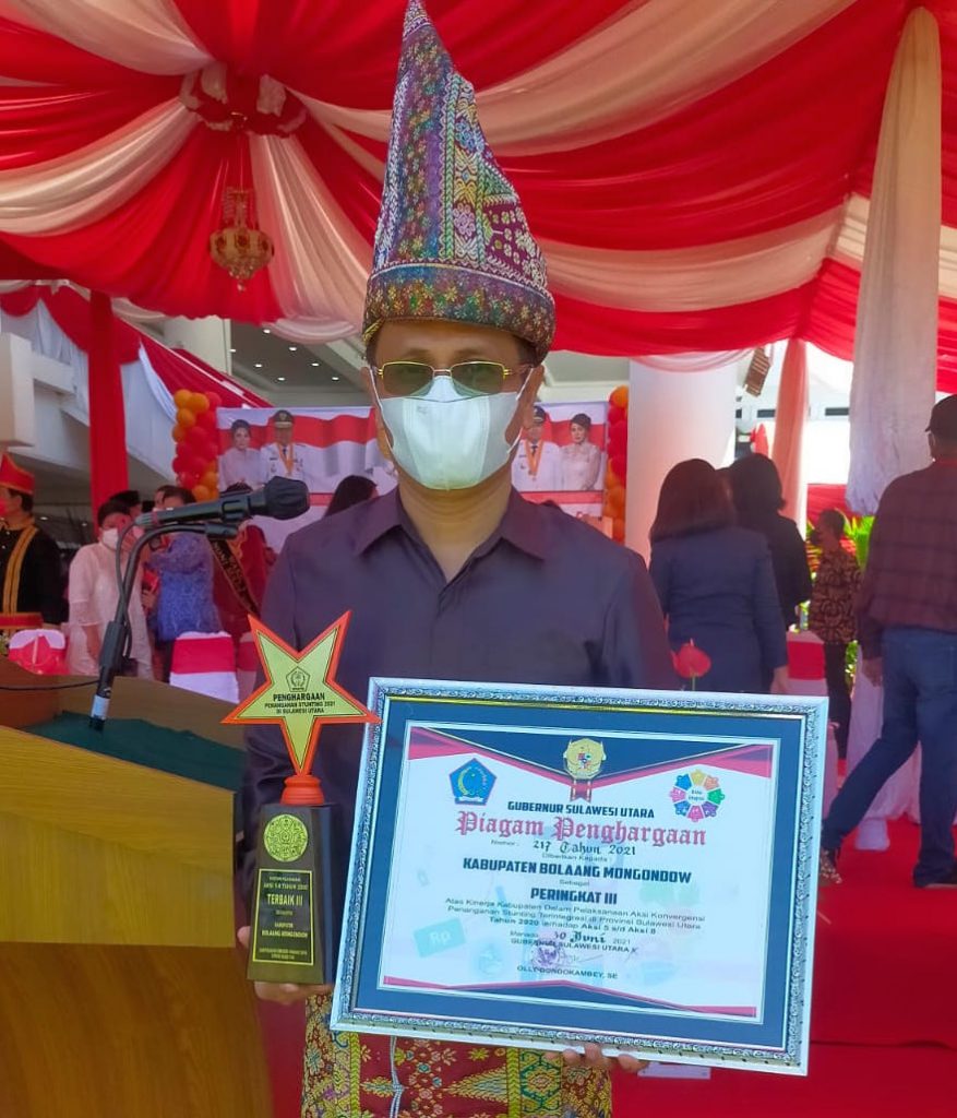 BOLMONG – Kabupaten Bolaang Mongondow (Bolmong) mendapat perhatian dari Pemprov Sulut untuk usaha dan keseriusan penurunan stunting. Perhatian tersebut berupa penghargaan  yang diserahkan bertepatan dengan Hari Ulang Tahun Pemprov Sulut ke 57, yang diserahkan Gubernur Sulut Olly Dondokambey, Kamis (23/9). Penghargaan itu diterima Wakil Bupati Bolmong Yanny Ronny Tuuk. “Penghargaan ini adalah hasil dari kerja keras dari semua pihak dalam rangka penurunan stunting di Bolmong,” kata Wakil Bupati Yanny Ronny Tuuk usai menghadiri peringatan HUT ke-57 Provinsi Sulut di Manado.
