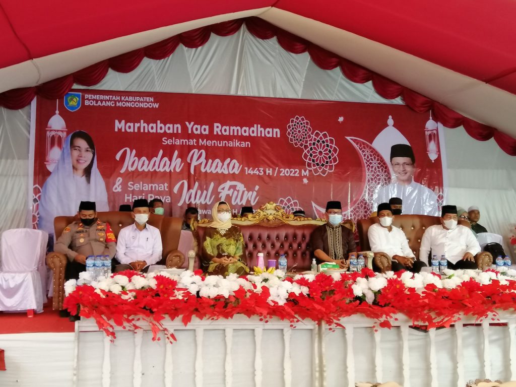 BOLMONG – Pemerintah Kabupaten (Pemkab) Bolaang Mongondow (Bolmong) menggelar Safari Ramadan 1443 Hijriah, tingkat Kabupaten. Bupati Yasti Soepredjo bersama jajaran Pemkab Bolmong Senin (11/4/2022) hari ini melaksanakan safari ramadhan di dua kecamatan. Dihadiri oleh jajaran pimpinan organisasi perangkat daerah (OPD) Pemkab Bolmong, petugas agama, dan jamaah setempat. Jajaran Pemkab buka puasa bersama di Desa Bulud, Kecamatan Passi Barat. Rombongan kemudian menuju Desa Komangaan melaksanakan sholat tarawih bersama masyarakat muslim di Kecamatan Bolaang.