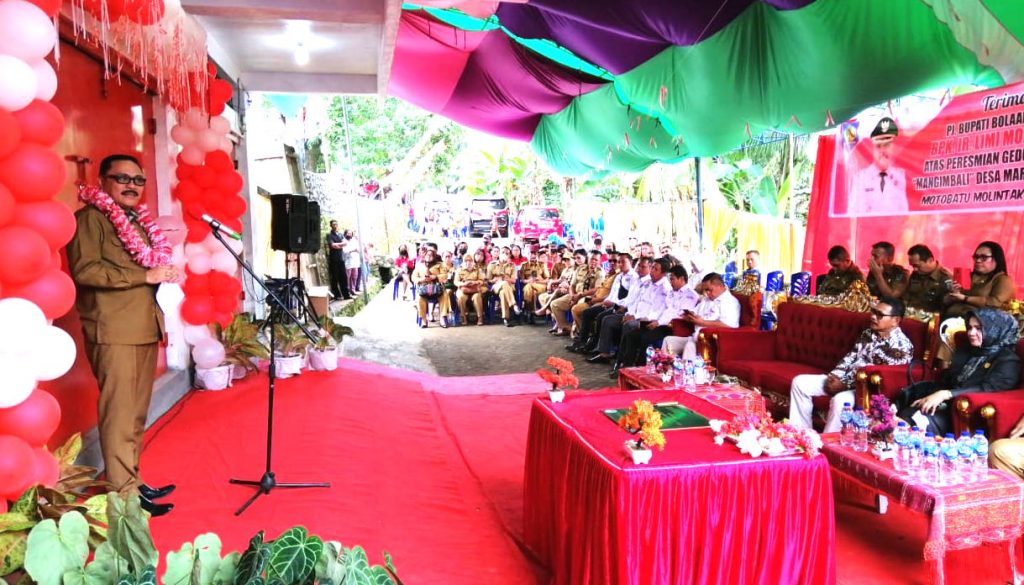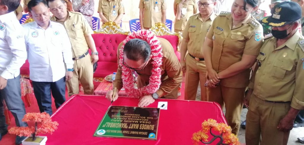 BOLMONG – Penjabat Bupati Bolaang Mongondow (Bolmong) Ir Limi Mokodompit MM, resmikan pembukaan Minimarket Bumdes Mart Mangimbali desa Mariri Baru, kecamatan Poigar, Senin (8/8/2022). Acara peresmian milik badan usaha desa (Bumdes) Mangimbali desa Mariri Baru tersebut, ditandai dengan penandatanganan prasasti bangunan yang dibangun dari sumber dana desa (DD) total penyertaan modal Sebesar Rp307 juta lebih dianggarkan selama 7 tahun. Dalam sambutan Camat Poigar Alfina Sumenda mengatakan tujuan dibangunnya Bumdes Mart ini, demi peningkatan kesejahteraan ekonomi masyarakat. Kemudian, keberadaan Bumdes Mart, juga dapat memberikan sumber pendapatan asli desa (PAdes) setempat. Ia mengungkapkan, Bumdes Mart Mangimbali desa Mariri Baru, berdiri sejak 22 maret tahun 2016, yang diawali dengan penyertaan modal dari DD. “Iya dianggarkan mulai DD tahun 2016 ditahun berjalan sampai dengan sekarang ini pada DD tahun 2022. Total anggarannya Rp307.992.111,” ungkap Alfina.