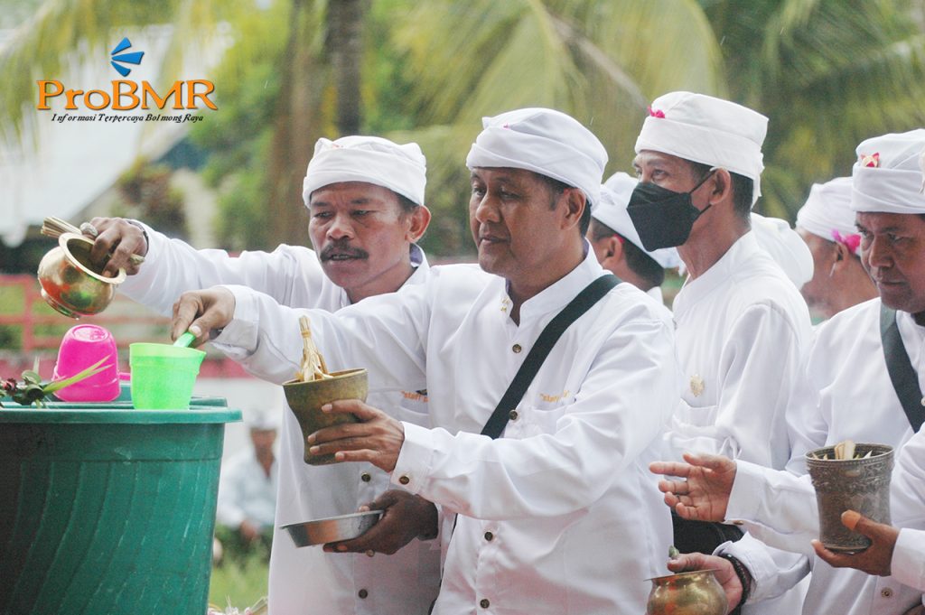 BOLMONG – Parisada Hindu Dharma Indonesia (PHDI) Desa Adat Mopugad menggelar upacara persembahyangan puncak 10 tahun Karya Ngenteg Linggih, Senin (10/10/2022). Upacara yang dihadiri ribuan umat Hindu Dharma se Kecamatan Mopugad bersatu itu digelar mulai jam 10.00 wita di Pura Dalem, siangnya di perempatan atau Catus Pata, dan sore pukul 15.00 wita di Pura Puseh. Sejumlah tokoh hadir dalam upacara tersebut, yakni ketua PHDI Bolmong I Nyoman Sukra, anggota DPRD I Ketut Sukadi, Ketua PHDI Desa Mopugad I Nengah Puji SPd MSi. ”Upacara ini melibatkan semua banjar yang ada di Desa Adat Mopugad, yang bertugas di masing-masing Pura yang menjadi tempat pelaksanaan. Syukurlah berjalan lancar mulai dari pagi hingga pukul 18.00 wita,” kata I Nengah Puji. Sementara, ketua PHDI Bolmong I Nyoman Sukra mengatakan, mendukung penuh upacara peringatan 10 Tahun Karya Ngenteg Linggih, dan berharap dapat diteruskan oleh generasi muda Desa Adat Mopugad. (Faisal)