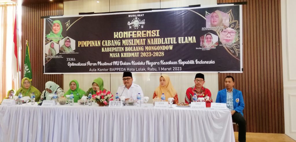 “Saya selaku ketua pimpinan wilayah Muslimat NU Provinsi Sulut ucapkan selamat berkonferensi PC muslimat Bolmong. Semoga seluruh rangkaian berjalan dengan lancar, dapat menghasilkan yang optimal,” kata Mokoginta, dalam sambutannya. Pada kesempatan itu, Penjabat Bupati Bolmong Ir Limi Mokodompit MM menyampaikan selamat berkonferensi Muslimat NU Bolmong, dimana organisasi ini kedepan harus besar. “Saya menyambut baik kepada seluruh ketua dan pengurus Muslimat NU Bolmong, moga konferensi ini berjalan dengan lancar dan tertib,” ucap Bupati. Ia mengatakan organisasi perempuan Muslimat NU ini terbentuk setelah setahun Indonesia merdeka. Kata dia, NU tidak hanya sebagai pilar agama saja. Tapi NU sebagai pilar pemersatu bangsa dimana menjaga persatuan dan kesatuan rakyat Indonesia. “NU merupakan organisasi besar di negara ini. Bahkan Banyak melahirkan tokoh – tokoh besar penting di negara ini. Untuk itu, di Bolmong NU harus besar. Apalagi ibu – ibu Muslimat NU sebagai pilar keluarga,” tegas Bupati Limi.