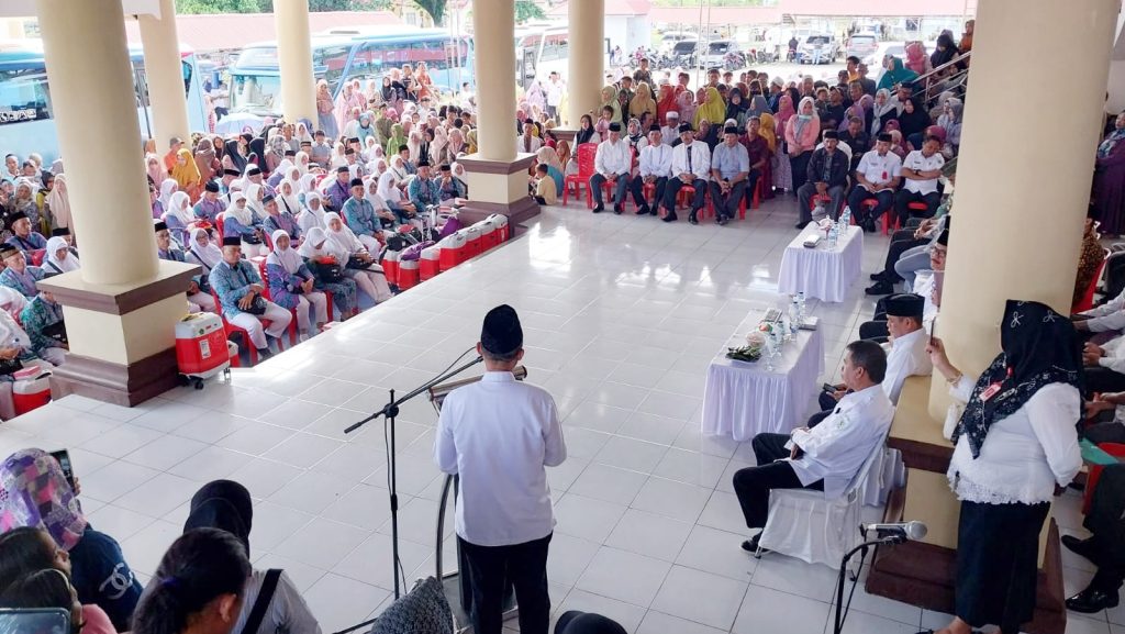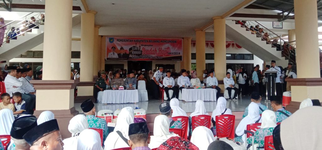 BOLMONG – Penjabat Bupati Bolaang Mongondow (Bolmong) Ir Limi Mokodompit MM melepas 79 Jamaah Calon Haji (JCH) musim Haji 1444 Hijriah, 2023 Masehi, di pelantaran Kantor Bupati Bolmong, Rabu (14/6/2023). Turut hadir, Kepala kantor Kementerian Agama Bolmong, Ketua DPRD Bolmong Welty Komaling, Wakil Ketua DPRD Bolmong Sulhan SE SH, Sekretaris daerah (Sekda) Bolmong Tahlis Gallang, Staf Khusus Bupati Bolmong Salihi Mokodongan, Ketua MUI Hi Sulaiman Amba, para asisten dan OPD Pemkab Bolmong, serta JCH Bolmong yang akan menunaikan rukun Islam yang ke lima. Dalam kesempatan itu, Kepala Kantor Kemenag Bolmong Hi Shabri Bora menyampaikan, jumlah JCH Bolmong tahun ini lebih besar dari tahun – tahun sebelumnya. “JCH Bolmong tahun Ini sebanyak 79 orang, dan ada sekitar 17 orang kategori lanjut usia (lansia) umur 70-an tahun keatas,” katanya.
