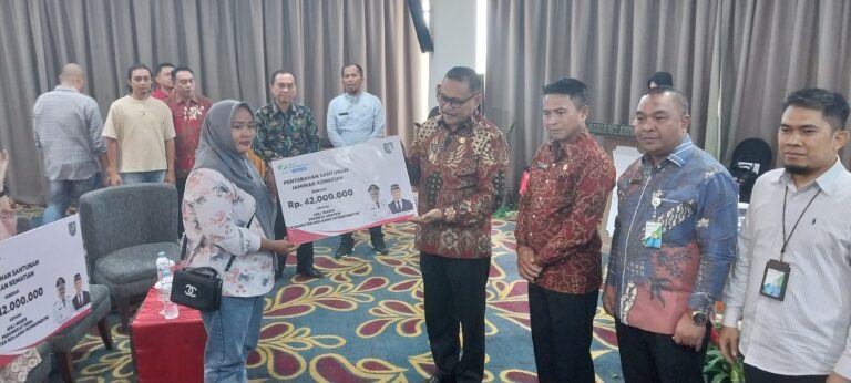 BOLMONG – Penjabat (Pj) Bupati Bolaang Mongondow (Bolmong) Ir Limi Mokodompit MM didampingi Sekretaris Daerah (Sekda) Tahlis Galang SIP MM, menandatangani nota kesepahaman dan perjanjian kerja bersama BPJS Ketenagakerjaan Sulawesi Utara (Sulut), di Hotel Sutan Raja Kotamobagu, Jumat (21/7/ 2023). Serta implementasi intruksi Presiden Nomor 2 Tahun 2021 tentang optimalisasi pelaksanaan jaminan sosial ketenagakerjaan. Kepala BPJS Provinsi Sulawesi Utara (Sulut) Sunardi Sahid mengatakan, untuk Kabupaten Bolmong sendiri sudah berkontruksi keikutsertaannya sebesar 83,17 persen. “Kami mengapresiasi dan penghargaan yang tinggi kepada bupati serta jajarannya karena keikutsertaan tenaga kerja di Bolmong yang cukup tinggi,” katanya.